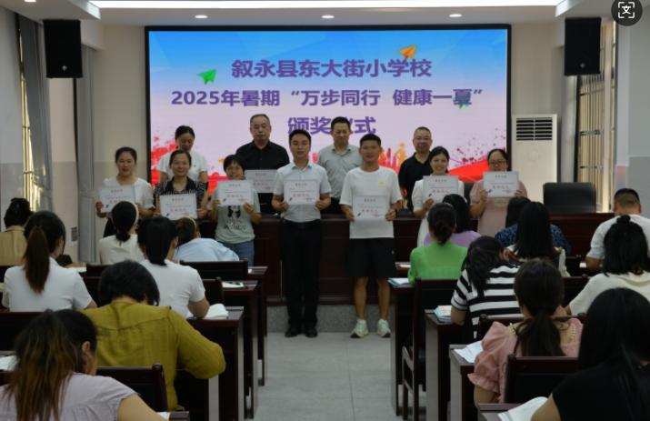 为丰富教师暑期生活、培养健康生活习惯,让教师度过充实有意义的假期,叙永县东大街小学校于暑期开展“万步同行,健康一夏”教师主题运动活动。9月10日下午,学校为暑期累计步数突出的教师举行颁奖仪式,为活动画上圆满句号。