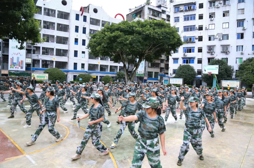 四川省达县职业高级中学高一年级军训日程过半,在完成常规训练任务的同时,同学们积极参与三大特色科目训练,展现出饱满的热情与昂扬的青春风貌,成为校园中一道亮丽的迷彩风景线。 刺杀操:铁血男儿展军人气魄 刺杀操方阵由该校男同学组成,训练时,他们手持木枪,眼神锐利坚毅,尽显少年锐气。随着教官一声令下,同学们迅速进入状态,挥枪、突刺、收枪等动作一气呵成,刚劲有力的姿态中,满是军人的威武气势。此刻的他们,仿佛化身为守护家国的战士,将青春的血性与担当展现得淋漓尽致。 军体拳:阳刚少年释热血豪情 同样由男同学组成的军体拳方阵,训练场上尽显活力。他们精神抖擞地站定,出拳时虎虎生风,踢腿时凌厉迅猛,整套军体拳动作整齐划一,刚柔并济的姿态里,满是少年的阳刚之气。每一个动作都蕴含着力量与技巧,将青春的热血豪情展现得十分到位。 匍匐刀:巾帼少女显别样风采 与前两个方阵不同,匍匐刀科目由女同学组成。这支 “巾帼方阵” 在训练场上同样耀眼。她们手持塑料仿真匍匐刀,身姿挺拔,英姿飒爽。训练过程中,同学们认真聆听教官讲解动作要领,反复练习挥刀、前刺、反刺等动作,每一个环节都毫不松懈,一招一式丝毫不逊色于男同学。她们用坚韧不拔的毅力和勇敢无畏的精神,诠释出新时代女性的别样风采。 此次三大特色军训科目,均由经验丰富的军训教官全程悉心指导。从基础动作的规范纠正,到整体方阵的配合协调,教官们耐心讲解每一个细节,对同学们的训练严格要求。同学们也始终热情高涨,全身心投入到训练之中,在学校操场上掀起了一股刻苦训练的热潮。 此次特色军训科目训练,不仅帮助同学们强健了体魄,更在日复一日的训练中锤炼了他们的意志,让大家在团队协作中培养出强烈的集体意识与团结协作精神,成为本次军训中最亮眼的特色与亮点。