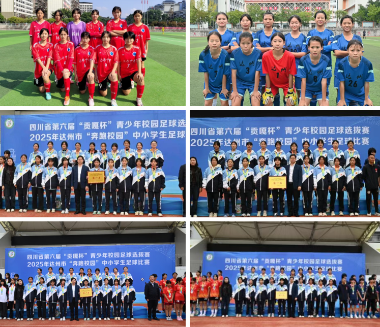 四川省第六届“贡嘎杯”青少年校园足球联赛选拔赛暨2025年达州市“奔跑校园”中学生校园足球比赛于10月31日落下帷幕,达州中学女子足球队再次囊括中学女子组冠军,斩获初中女子组11连冠、高中女子组8连冠! 本次比赛由达州市教育局、达州市文化体育和旅游局联合主办,达州市学生体育艺术协会协办,共设初中、高中、中职男、女6个组别,比赛分赛区分别设在达州市第一中学校凤凰校区(初中男子组)、四川省达州中学杨柳校区(初中女子组)、达州市天立学校(高中男子组)、四川省达州中学翠屏校区(高中女子组)、达州市体育中心训练场(中职男子组)、达州市高级中学江湾城校区(中职女子组)。比赛共历时5天,参赛单位有2024年达州市“奔跑校园”中小学生校园足球比赛中学组冠亚军学校;各县(市、区)、达州高新区、达州东部经开区各组别(男、女)校园足球比赛冠军队等,共计49支代表队、1000余名运动员参赛。