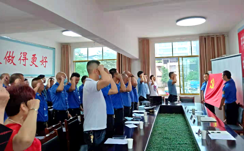 重温誓词再立“红色理想”。在党旗面前,全体党员再次庄严宣誓。“我志愿加入中国共产党,拥护党的纲领,遵守党的章程,履行党员义务......”全体人员面对鲜红的党旗,高举右手、昂首挺胸,集体重温入党誓词,接受了一次深刻的精神洗礼。