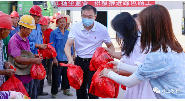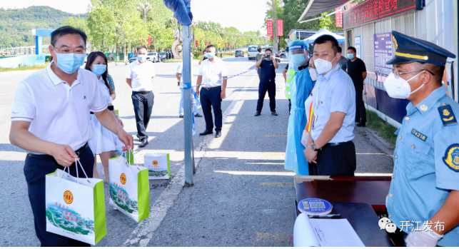 8月10日,开江县委书记庞佑成率队深入一线开展“送清凉”慰问活动,为高速路口疫情防控、交通管控工作人员和重点项目建设者送去夏日清凉解暑物品,送去党和政府的关心关怀。