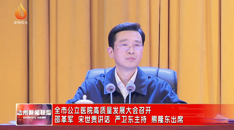 1月6日,达州市公立医院高质量发展大会在巴山大剧院召开。达州市委书记邵革军,省卫生健康委副主任、一级巡视员宋世贵出席会议并讲话。达州市委副书记、市长严卫东主持。达州市委副书记、达州高新区党工委书记熊隆东出席。