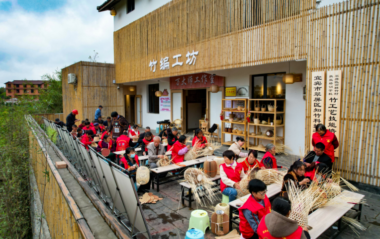 竹编工艺历史悠久,不仅具有很强的实用性和观赏性,更具深厚的历史文化底蕴。自2020年12月起,宜宾市翠屏区在李庄镇高桥竹村挂牌成立“竹技能培训学校”,常态化组织开展竹编技能培训,大力传承发扬竹编技艺,培育竹编体验新业态,有效促进了当地群众就近就地就业,助力村民实现“挣钱顾家两不误”。