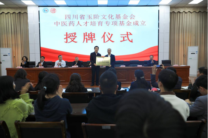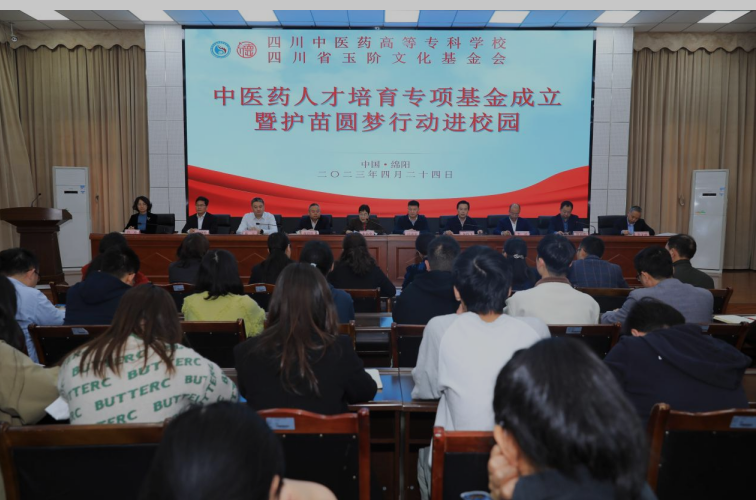 4月24日,四川中医药高等专科学校与四川省玉阶文化基金会在绵阳举行了中医药人才培养专项基金成立大会,朱德总司令孙女、四川省玉阶文化基金会理事长朱新华,基金会副理事长龙腾飞、秘书长谢军、副秘书长蔡建明;四川中医药高专校党委副书记汪涌泉,副校长商碧辉、李祥、梁晓峰、纪委书记李文虎、副校长肖玲及全校中层管理干部、师生代表等参加大会;中国医学职教整合联盟相关成员单位通过线上直播同步收看了大会和朱新华理事长作的专题报告。