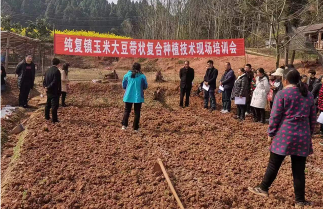 (开展玉米大豆带状复合种植技术现场培训) 党员下沉,跑出春耕“加速度”。组建农技服务队5支,走村入户了解群众春耕备耕情况。通过坝坝会、户长会等形式深入田间地头进行春耕生产动员、开展水稻、玉米种植技术指导、田间管理、病虫害防治技术培训、惠农政策宣传等60余次,参加群众1000余人次,发放宣传手册1000余份,解决群众春耕生产技术难题,积极引导群众全力以赴开展春耕生产。截至5月1日,全镇累计完成大春粮食播种、栽插面积32640亩。