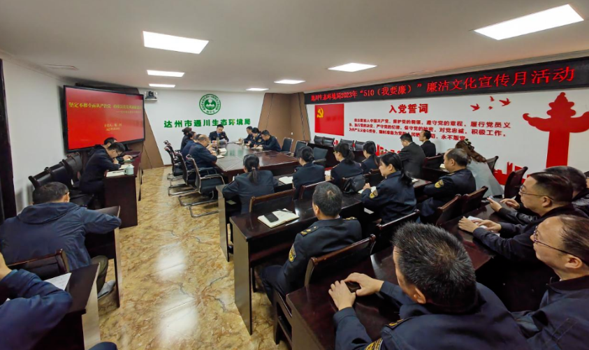 为深入开展“510(我要廉)”廉政文化宣传月活动,进一步增强党员干部的廉政意识和拒腐防变的自觉性,5月10日,通川生态环境局组织党员干部开展2023年“510(我要廉)”廉洁文化宣传月活动。活动中,以《坚定不移全面从严治党 持续深化党风廉政建设》为题进行了廉政专题党课学习教育,开展了集体廉政谈心谈话,观看了警示教育专题片,进行了“510(我要廉)”宣誓承诺活动。