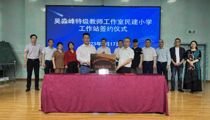 (吴淼峰特级教师工作室民建小学工作站签约仪式现场)