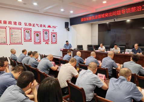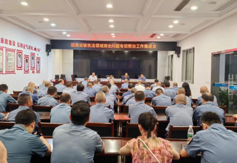 2023年7月17日上午,渠县交通运输局交通运输综合行政执法一中队召开道路运输执法领域突出问题专项整治工作推进会。县交通运输局机关纪委书记、执法大队大队长、县纪委驻财政纪检组组长出席并讲话,中队领导班子成员作了表态性发言,全体干部职工参加了会议。