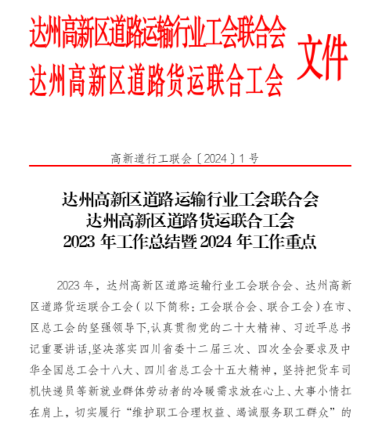 2023年,在达州高新区总工会的坚强领导下,达州高新区道路运输行业工联会、达州高新区道路货运联合工会切实履行“维护职工合理权益、竭诚服务职工群众”的职责,充分发挥了工会“娘家人”的作用,赢得了职工群众的拥护,真正实现“职工有所呼、工会有所应”。