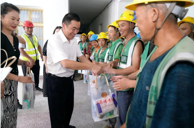 省建十五司达州基地有机更新项目是达州市中心城区危旧房改造三年攻坚行动首个示范项目,目前正在加速推进。唐令彬为一线施工人员送上了防暑降温物品,并致以亲切问候,对大家克服酷暑高温、坚守岗位施工表示感谢。他叮嘱项目负责人,要科学组织项目施工,合理调整作息时间,做好做足防暑降温和后勤保障工作,在严把施工安全和工程质量的前提下,高标准高质量高效率推进项目建设。