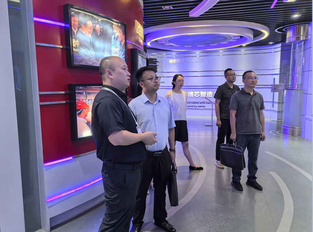调研期间,田晓华一行先后参观了公司党建文化长廊、“芯”动世界数字化展厅等地。在党建文化长廊,调研组听取相关负责人系统介绍,深入了解企业深化建设“红·领·带”特色党建工程,持续推动企业高质量发展的具体举措,称赞企业在党建文化塑造方面的独特做法;在数字化展厅,调研组通过影像资料、数字化“驾驶舱”、3D工艺显示技术等方式,详细了解了企业战略规划、智能制造、科技创新、特色文化等方面的情况,近距离观看了企业自主设计研发的核电站用电缆、光伏发电站用电缆、轨道交通用特种电缆等产品。