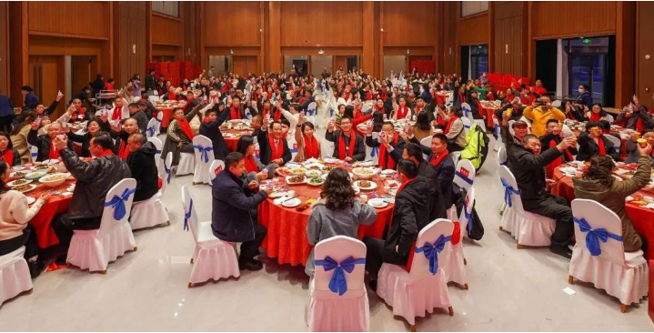 文艺演出结束后,丰盛的团年饭上桌。餐桌上摆满了通川特色美食,香气四溢。大家围坐在一起,一边品尝佳肴,一边亲切交流。共同分享一年来的工作经历和生活趣事,畅谈着家乡的变化和未来的发展,现场欢声笑语,其乐融融。