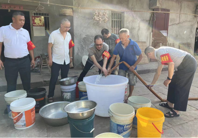 (图为渠县审计局党员突击队为金凤村缺水群众送水)