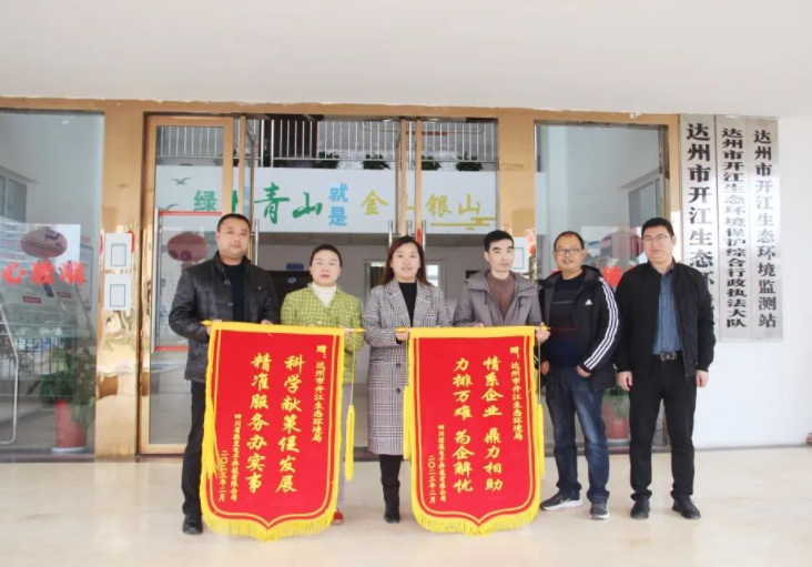 达州市开江生态环境局真诚服务感动企业赠锦旗