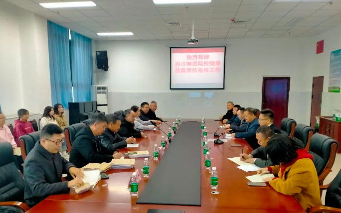 近日,内江师范学院副校长赵明,外国语学院党委书记唐德斌,数学与信息科学学院院长石勇国,物理与电子信息工程学院院长陈湘等8人赴达川中学开展实习生交流座谈会。