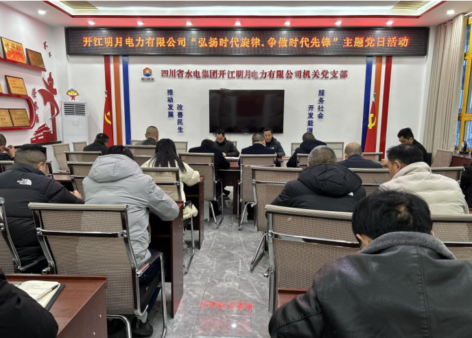 3月6日,四川省水电集团开江明月电力有限公司机关党支部按照县委组织部的工作要求,在公司二楼党员活动室开展了“弘扬时代旋律、争做时代先锋”主题党日活动,该支部40余名党员参加了活动。