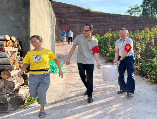 (烈日下为金凤村困难群众送水到家)