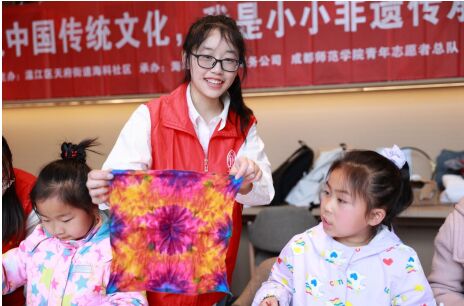 活动当天,社区特意邀请了从事非遗文化工作的扎染老师给大家进行现场教学,让小朋友们更深刻地领略到中国传统文化的精神。非遗老师首先向同学们介绍了扎染工艺的基本知识、扎染特点和制作技巧,然后给每个人都分发了纯白布料和工具,芾领大家做好准备工作;接下来老师向小朋友们展示了已经染好的成品作品,每一件的图案都绚丽多彩、活灵活现;老师还传授给小朋友们扎染的色彩搭配技巧和扎染的注意事项,老师都手把手进行指点,现场气氛热烈。(袁海马 张涵铃)