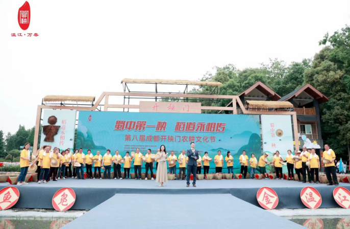 蜀中第一秧,稻道永相传。2023年5月6日,第八届成都“开秧门”农耕文化节在一声“开秧门喽!”的高昂呐喊中开幕,一簇簇鲜绿的秧苗落入温江区万春镇和林村千亩稻海,古蜀鱼凫农耕文化在这片希望的田野上代代传承。