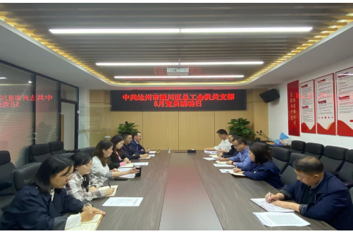 5月11日,通川区总工会机关党支部组织开展5月“党员活动日”。会议由党支部书记谭明生主持。区总工会党组书记、副主席李良,机关全体党员参加会议。