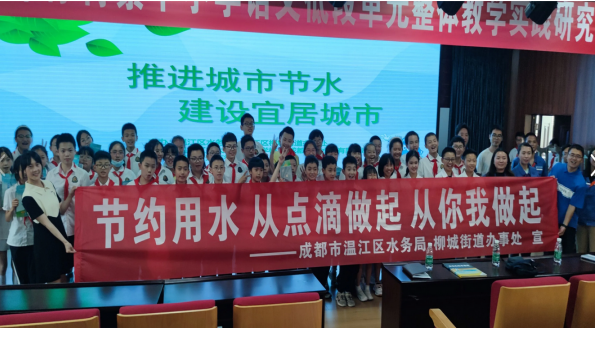 此次活动以“推进城市节水、建设宜居城市”为主题,开展“大手牵小手 争当节水卫士”宣传活动。活动中温江区水务局老师通过播放视频向同学们讲解水资源保护、水环境治理等方面的知识,号召学生们爱水节水,牢记培养良好的节水习惯。成都首创水务有限公司的老师通过讲解温江区水资源环境,自来水厂水处理工艺流程和现场试验,鼓励同学们要做一个“爱水、惜水、节水”的好孩子,把节水理念宣传给周边的人。