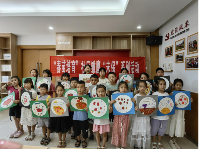 活动邀请5名大学生青年志愿者,参加活动的小朋友们从大手拉小手一起过暑期开始。在这期活动中,小朋友们完成自我介绍以后,在志愿者的指导下,认真的绘画出红红的番茄图案。
