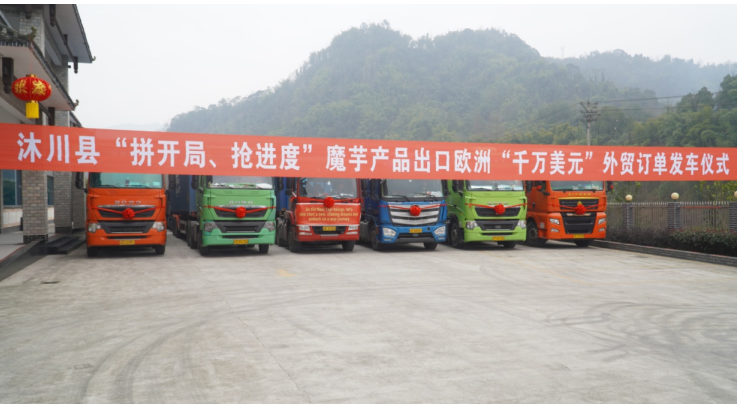 1月31日,沐川县“拼开局、抢进度”魔芋产品出口欧洲“千万美元”外贸订单发车仪式在生态源生物科技有限公司举行。省农业农村厅、乐山海关、沐川县人民政府、乐山市进出口商会等相关领导出席发车仪式。