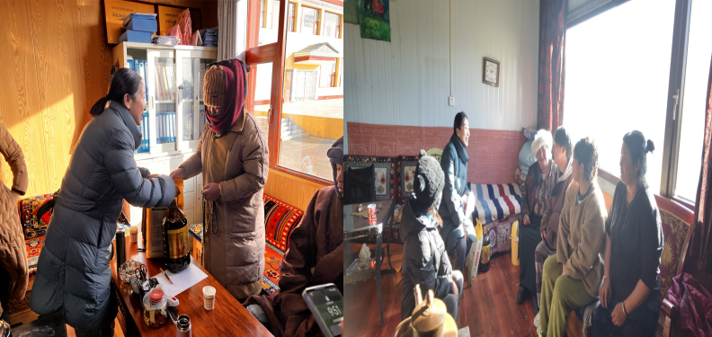 春节前夕,阿坝州文学艺术界联合会深入红原县邛溪镇达格龙村、龙日镇壤噶夺玛村和联系寺庙开展“两联一进”工作,与联系户、联系僧人面对面交流,心连心交往,详细了解联系户和僧人今冬明春是否存在生产生活困难和问题诉求,切实将联系帮扶工作落到实处。