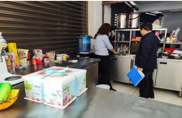 (3月21日,镇应急办工作人员检查岸声蛋糕制作坊消防安全)