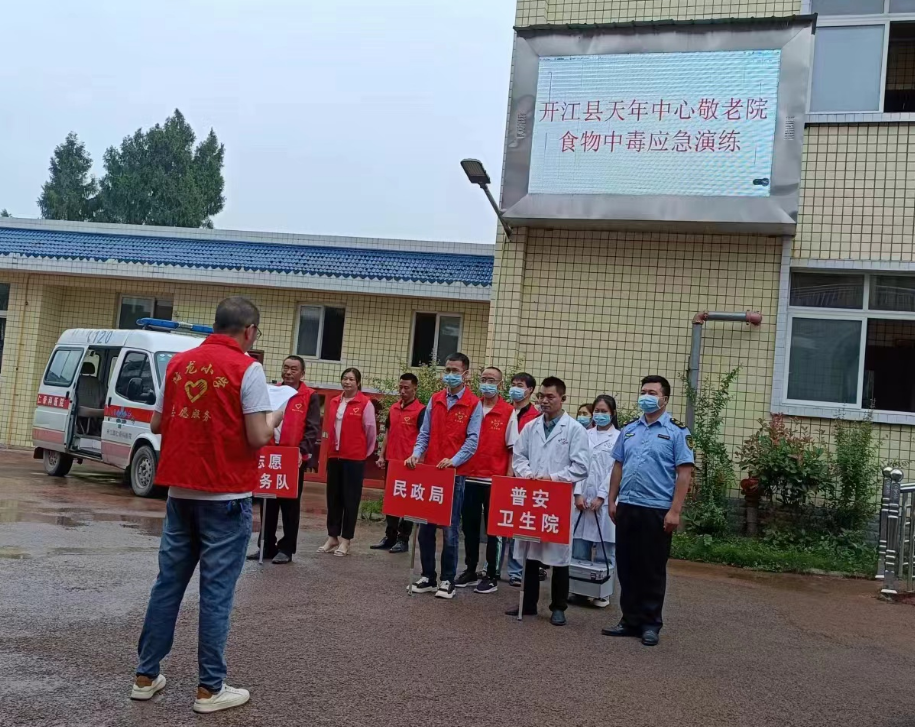 天气日渐炎热,食物容易腐败变质,食物中毒事件发生几率增高。针对养老机构人员密集、集中用餐、易发生群体性食物中毒的特点,为有效、有序地处置养老机构内可能发生的食品卫生安全事故,最大限度地减轻事故造成的损失,切实保障在院老人的生命安全,确保事故处理工作高效,6月3日,开江县民政局联合普安镇市监所、骑龙卫生院、骑龙社区在县天年中心敬老院开展食物中毒应急演练。