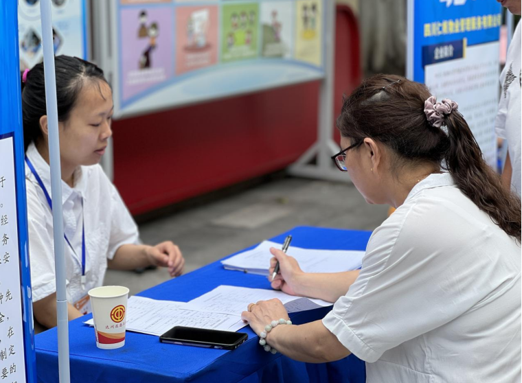 活动现场还设置了政策宣传和法律咨询点,为求职者及职工群众提供法律咨询服务,提升广大职工群众的法治意识和维权意识,营造知法懂法用法的良好氛围。现场发放《工会法》《劳动法》《劳动合同法》,创业就业政策等宣传资料1200余份,提供咨询服务80余人次。