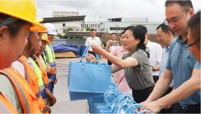 在达州禾丰二期项目建设现场,刘菁亲手将防暑降温物资递到一线建筑工人手中,对他们不畏酷暑、辛勤工作表示深切慰问和崇高敬意。刘菁表示,禾丰二期作为通川百亿级农产品及食品加工产业园的重要组成部分,正加速推进,为通川工业经济高质量发展注入强劲动力,而项目的顺利推进离不开每位工人的辛勤付出,希望企业继续做好防暑降温工作,确保施工安全与质量并重。