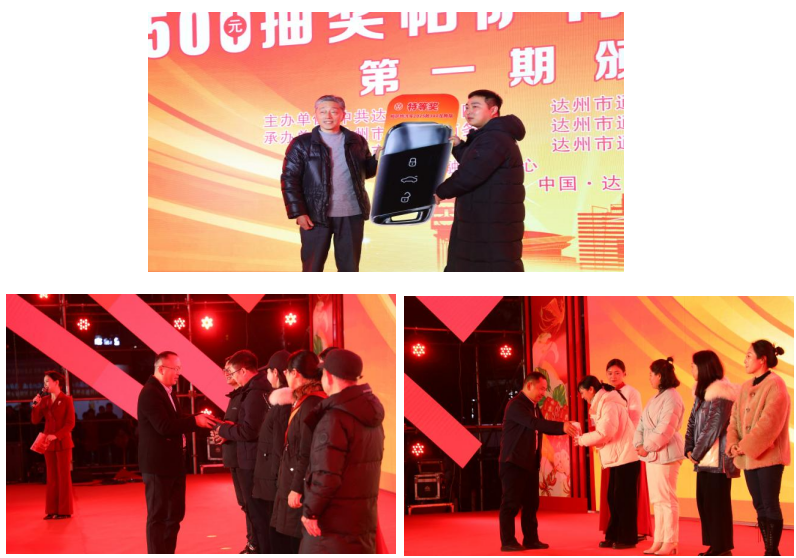 作为通川本次“1+5+N”系列促消费活动的重头戏,消费500元·抽奖帕萨特活动自开展以来,受到广大市民的关注和参与,活动现场进行了第一期颁奖仪式,特邀全国劳动模范,华润雪花啤酒有限公司原副总经理,工会主席黄建华、全省五一劳动奖章获得者,重庆盛鼎物业管理有限公司达州分公司负责人萧华、市级劳动模范,四川省川汉子食品实业有限公司董事长邓礼龙分别为特等奖、一等奖、二等奖获得者颁发奖品。
