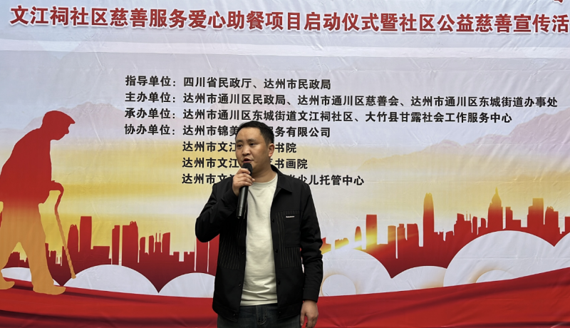 通川区东城街道社会事务办主任丁海礁在讲话中希望各参与单位密切配合,将项目做实做细,让慈善服务真正惠及每一位有需要的居民,为社区的和谐发展贡献力量。