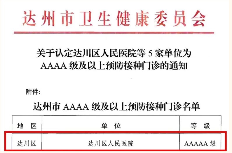 达川区人民医院:守护健康再升级!预防接种门诊获评“达州市AAAAA级”!