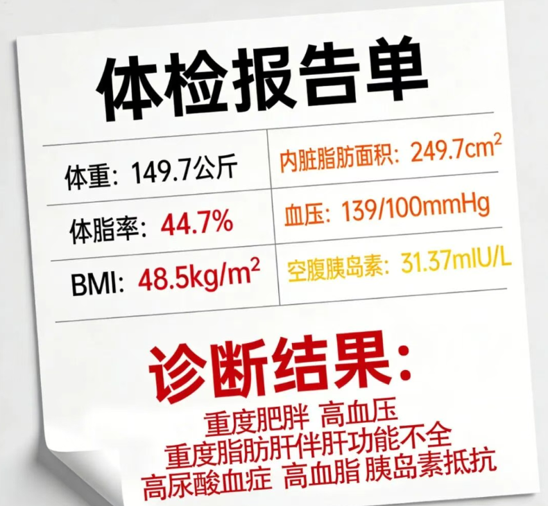 看到这组数据,他才真正意识到健康危机的到来,并选择到三院医学减重门诊接受专业的指导,用健康的生活方式帮助减重