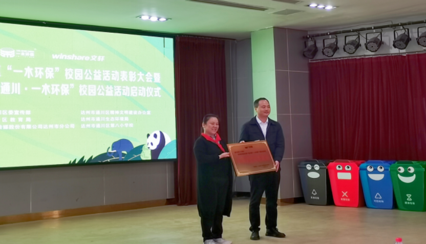 此次公益活动以“捐一张废纸 绿一个世界”为主题,旨在通过纸张循环利用,减少森林砍伐,保护绿水青山。活动中,通川区八小学生表演了环保主题节目《垃圾应该怎么倒》,少先队员宣读了“一木环保”倡议书,同学们积极上台捐赠废旧书籍,同时对2022年一木环保校园公益活动中获奖的集体和个人进行了颁奖,并授予了“环保教育示范基地”称号。