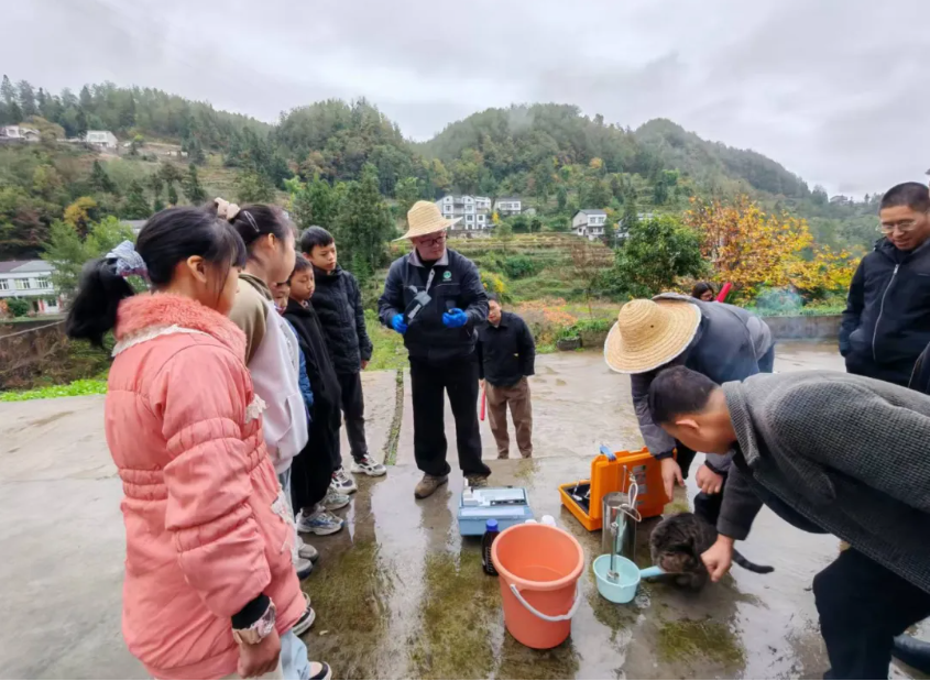 本次主要对万源市旧院镇凤凰山村、张草坝村和石冠村自来水水质、农村分散式水井水质进行了抽样检测。为保证检测数据结果的代表性与准确性,技术人员随机到饮用水点位抽取水样,然后用专用样品瓶保存、避光、冷藏,及时运送至实验室进行检测分析,从源头上对饮用水水质安全进行“精准把脉”。同时,技术人员还面对面向村民和学生解答了生态环境、饮用水安全、水质硬度等问题向村民和学生开展了一场别开生面的环保课,有效提高了人民群众对生态环境保护的认识。