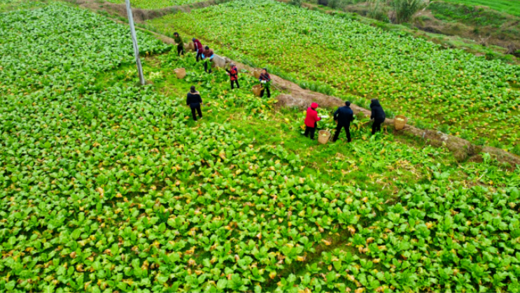律回岁晚冰霜少,春至人间草木知。早春时节,达川区南岳镇迎来了榨菜的丰收季。近年来,南岳镇抢抓冬闲田轮作时机,大力发展榨菜产业,实现了村民增收与土地高效利用。 走进南岳镇九元村榨菜种植园,一片片动人的翠绿映入眼帘,30余名村民正忙着采收榨菜,削根、去叶、装车,田间呈现出一片繁忙的春收景象。 (村民们在榨菜种植园采收榨菜) 近年来,南岳镇积极探索现代化农业发展路径,与重庆市涪陵榨菜集团建立合作关系,采取“订单农业”发展模式,科学规划500余亩土地用于统一培育榨菜苗,为全镇村民免费提供榨菜苗进行种植。同时,成立榨菜种植技术服务工作小组,从榨菜育苗、移栽,到田间管理、收购,为辖区内的种植户和村民提供全方位的指导服务。种植初期就签订收购合同,通过统一的良种供应、科学种植方法、精细田间管理、有效病虫害防治以及规范销售流程,严格保障蔬菜的质量标准和食品安全。 (村民们将采收的榨菜进行装车) 今年南岳镇预计采收榨菜750余吨,产值达50余万元,带动村民人均增收3000余元。接下来,南岳镇将继续围绕“明月山粮经产业发展组团”战略定位,引持续引进优良粮经作物品种,发展联农带农产业,培育村集体经济,为产业振兴和农民增收提供持续动力。 (南岳镇九元村榨菜种植园鸟瞰图)