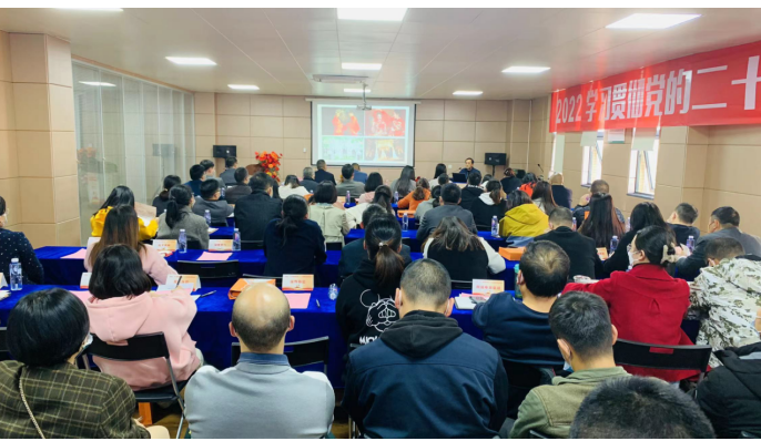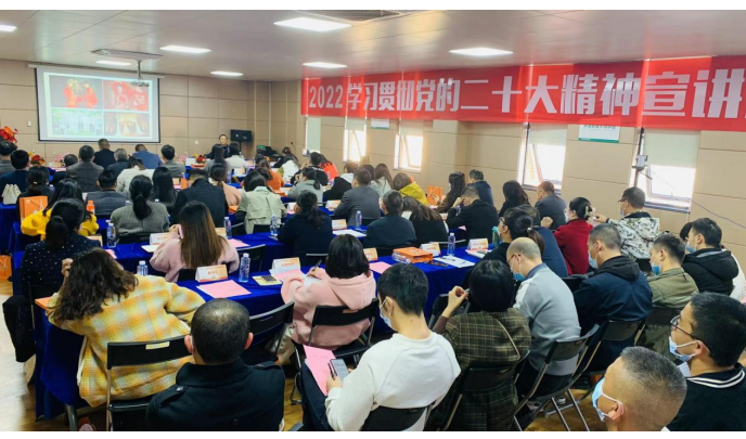 为深入学习贯彻党的二十大精神,激发全区两新组织踔厉奋发、勇毅前行、团结奋斗的精气神。2022年11月22日,郫都区两新党建组团专班在华东电气新办公楼会议厅开展学习贯彻党的二十大精神专题活动。本次活动由区委组织部(区委两新工委)主办,绿色氢能产业功能区、双创两委办、成都川菜城、成都影视城相关负责同志和区内部分两新组织党组织代表等90余人参与本次活动。