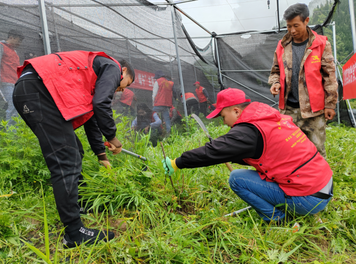 (洛多乡党员干部联合嘎茸村党支部在嘎茸村红毛五加基地义务除草)